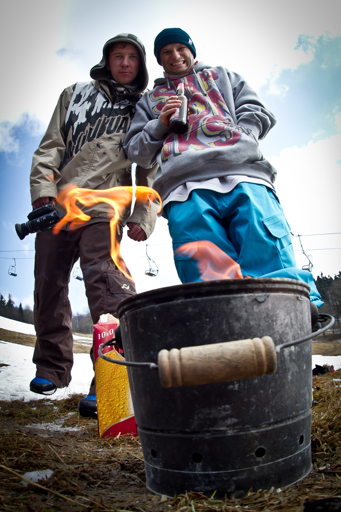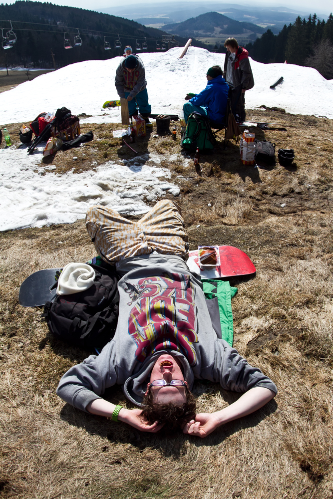 Jested, again…sun, slushy conditions, friends, barbecue, delicious food, czech beer, trade journal, snowboarding, dirt battle…;)…funny Sunday!!! Next week again, please!!! Pix —> all mighty Herfo!!!