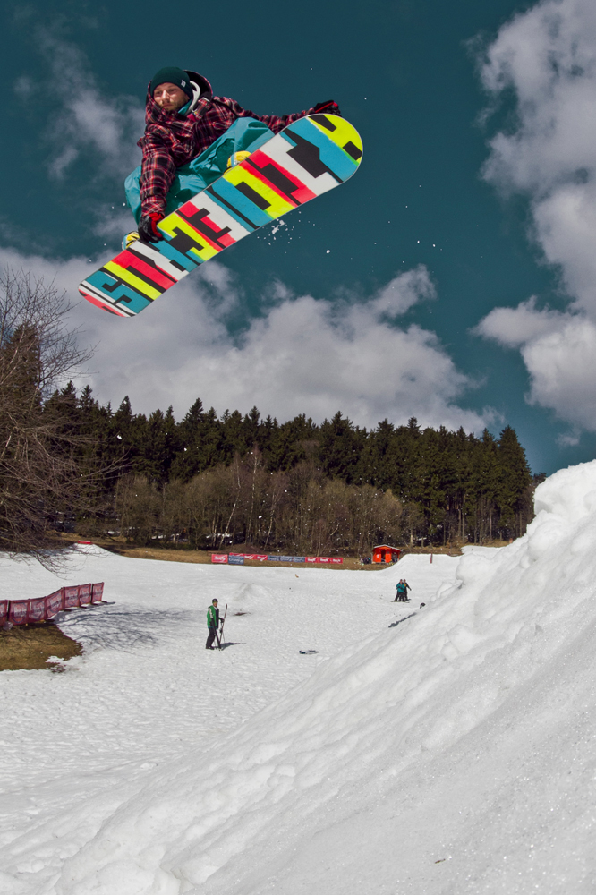 Last Sunday, Jested, slopes closed, with the car to the mountain top, 30 minutes of walking, Jenz with fucking flu, nice park, no people, springshred…we were there, it was good!!! Thx for pix Herfo!!!
