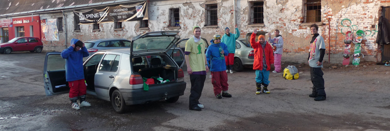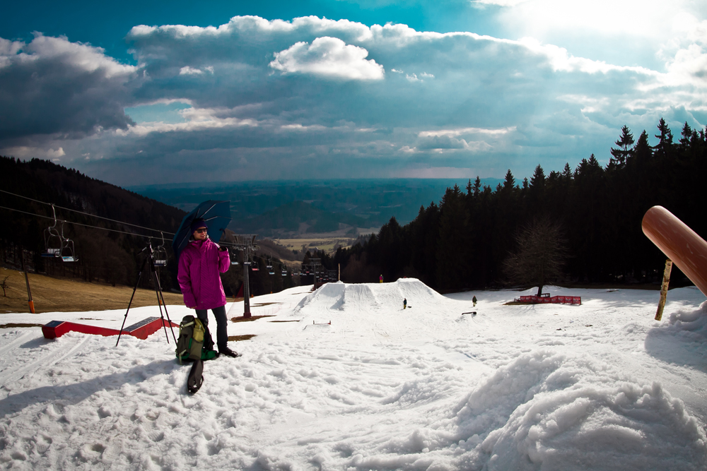 3rd day: breakfast, snowpark dolni morava – nice park, not enough snow, view BorderCross (It’s still around there…;), bunker-expedition, next stop snowpark paprsek – best park we’ve seen in CZ ever, unfortunately frozen slopes, broken thumb…S.H.I.T.!!!