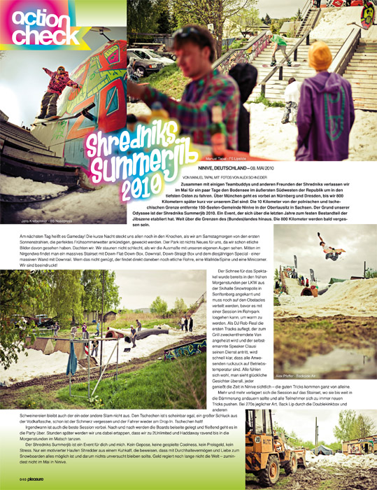 We are happy, like the last two years there are also this year a Summerjib ActionCheck in thePLeasureShredMag. Pick upPLeasure #87in your kiosk and scroll down for the report-pix here!!! All shotz byAlex Schneider, thx youAlex!
