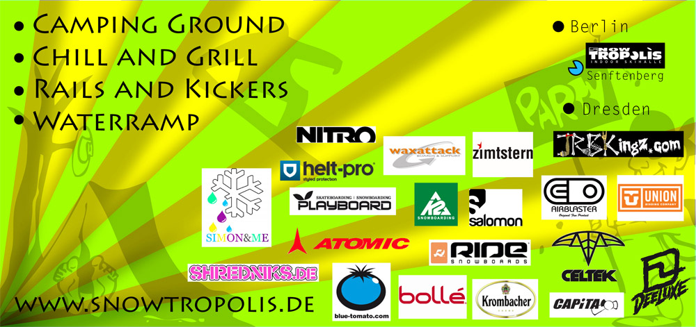 In not even two weeks will start theTropcamp-2010in SFB’s fridgeSnowtropolisand a lot of our rails and boxes are already on the way to this camp!!! We hope you have a good time with it!!! On Saturday there will be a shredcontest with pricestuff amongst others sponsored by our friendsRide-SnowboardsandK2-Snowboarding+ many, many other shred-companys!!! Also our buddys fromJrbkingz.comwill start a produkt test with the brands of the upcoming JRBKShop, check it out!!! Wrap up your barbecue, see you @ the camp!!!